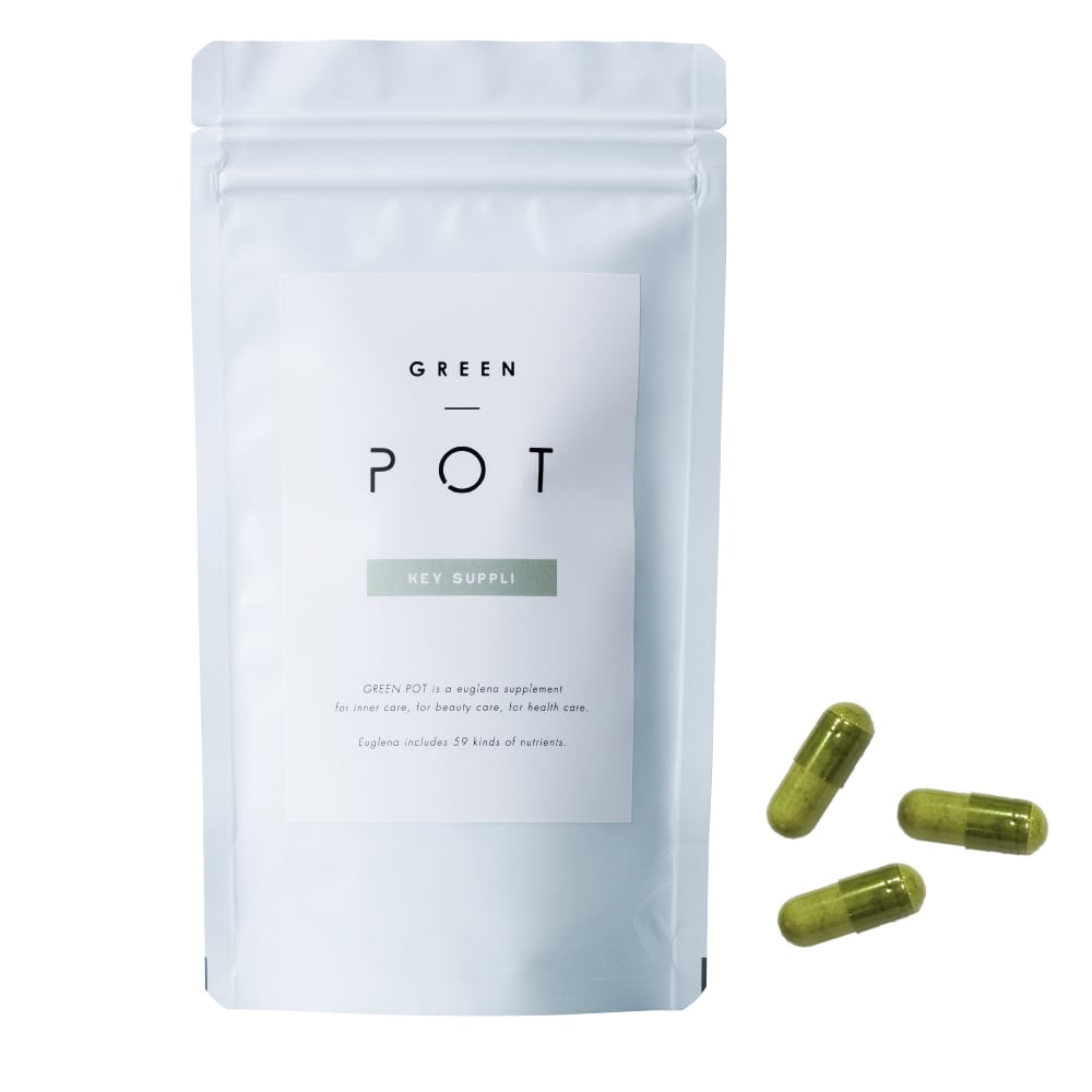 「グリーンポット キーサプリ」は「59種の栄養素をもち、食物繊維の働きをするユーグレナ」をベースに「相性の良い乳酸菌」を入れ、普段の食生活・運動・スキンケアなどを助ける美と健康のカギとなるサプリメントです。